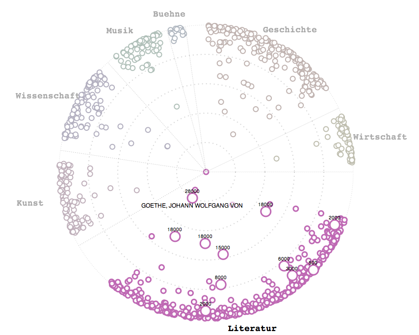 Visualization of the catalogue for an auction of about 1000 manuscripts by various influental personalities on Oct 22/23 2011. Focus is on the price and what we can say about the relative importance of the person (price tags). More information and interactive version here.